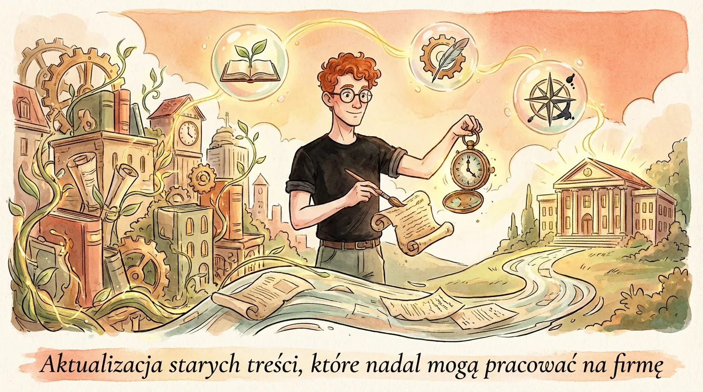 Aktualizacja starych treści to najszybsza droga do odzyskania wartości z materiałów, które już siedzą w serwisie i mają za sobą ruch, linki albo konwersje. Zamiast stawiać kolejny tekst od zera, firma może dopracować to, co zostało już zaindeksowane i choć częściowo oswojone przez użytkowników oraz wyszukiwarkę. W praktyce chodzi nie o polerowanie kilku zdań, lecz o twarde sprawdzenie, czy dany adres URL nadal odpowiada na realne pytania klientów i wspiera obecną ofertę. Dobrze wykonana aktualizacja treści zaczyna się od danych, a nie od samego pisania. I to ma konsekwencje, bo jedne materiały trzeba rozbudować, inne scalić, a część po prostu wycofać. Największy efekt daje zwykle praca nad treściami, które widoczność już mają, ale przestały dowozić wynik biznesowy.
