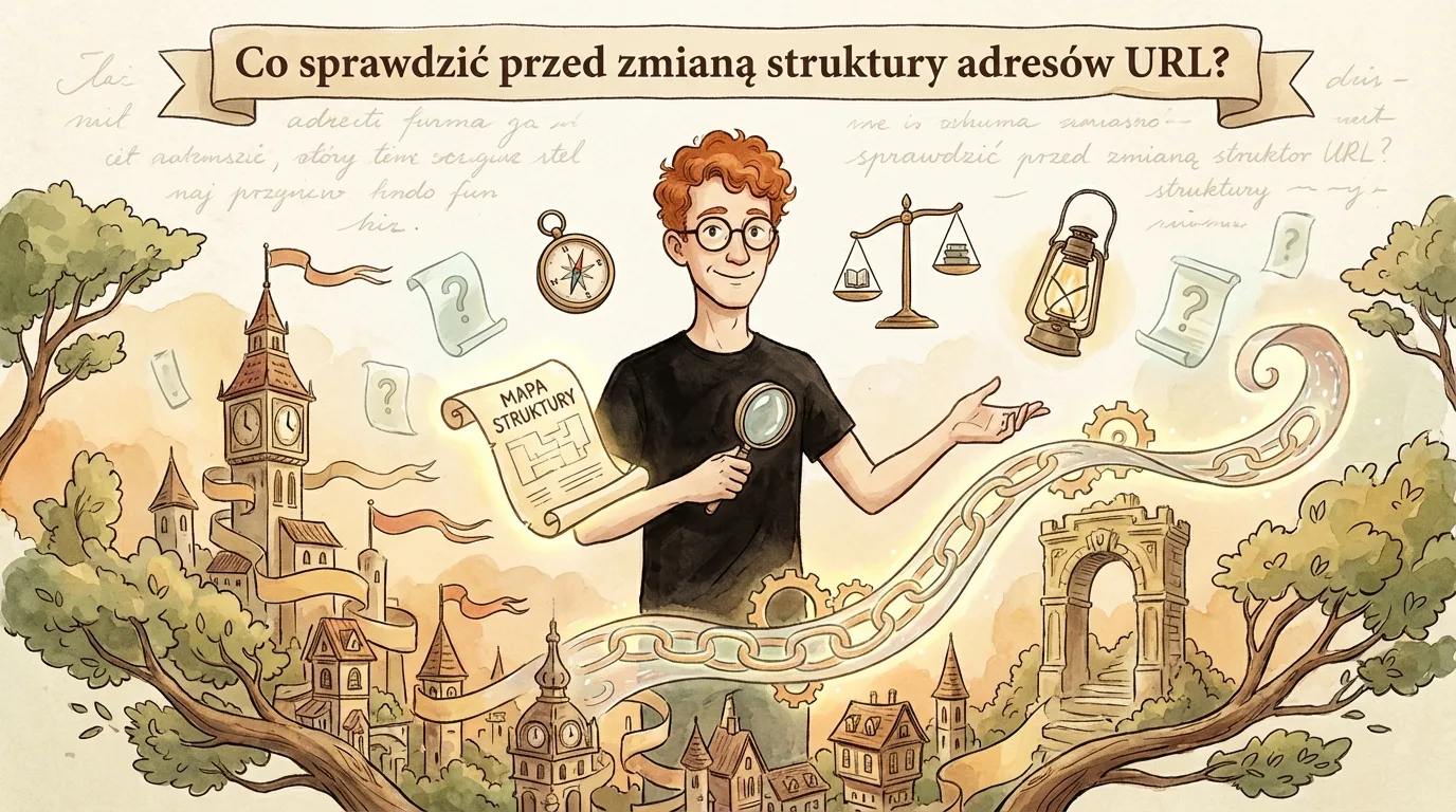 Zmiana struktury adresów URL to jedna z tych robót, które na papierze wyglądają niewinnie. W praktyce zahacza o SEO, analitykę, linkowanie wewnętrzne i zwykłe działanie serwisu, czyli o wszystko, co potrafi zaboleć po wdrożeniu. Zrobisz to dobrze i użytkownik wraz z wyszukiwarką przejdą ze starych adresów na nowe niemal bezszelestnie. Zrobisz to źle i tracisz ruch, rozjeżdżają się dane o konwersjach, a część wartości linków prowadzących do serwisu paruje. Sama zmiana adresów zwykle nie poprawia widoczności, a źle wykonana potrafi ją wyraźnie pogorszyć. Dlatego zanim cokolwiek klikniesz w panelu, trzeba ustalić, które URL-e są kluczowe, jak je przenieść i co, poza przekierowaniami, musi zostać zaktualizowane. W tym fragmencie skupiamy się na tym, czym taka zmiana naprawdę jest i gdzie czai się największe ryzyko.