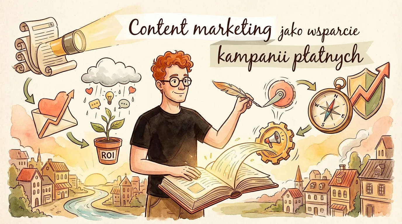 Content marketing jako wsparcie kampanii płatnych to po prostu model pracy, w którym treść jest elementem wykonania kampanii i prowadzi użytkownika od reklamy do konwersji. Nie stoi obok reklam, tylko idzie z nimi ramię w ramię. Ma ułatwić kliknięcie, zrozumienie oferty, ocenę rozwiązania, zostawienie danych oraz powrót użytkownika, jeśli nie decyduje się od razu.
