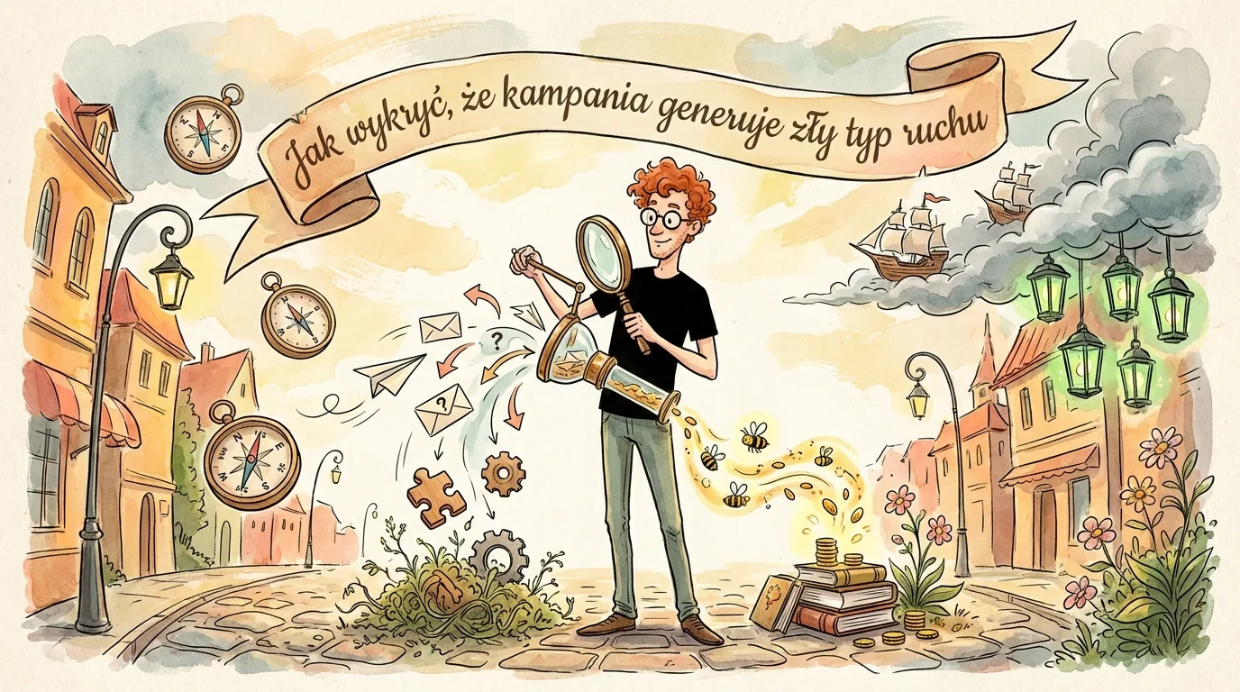 Zły typ ruchu wyłapiesz nie intuicją, lecz uporządkowaną analizą. Idź po kolei: cel kampanii, pomiar, źródła wejść, zachowanie na stronie i na końcu jakość wyniku, który naprawdę ma znaczenie. Kluczowe jest, żeby nie startować od kosztu czy liczby kliknięć, tylko od tego, jakiego użytkownika uznajesz za właściwego. Dopiero wtedy wiesz, które dane są sygnałem jakości, a które tylko szumem. Spójrzmy na to inaczej: bez definicji „dobrego użytkownika” nawet najlepszy raport staje się dekoracją.