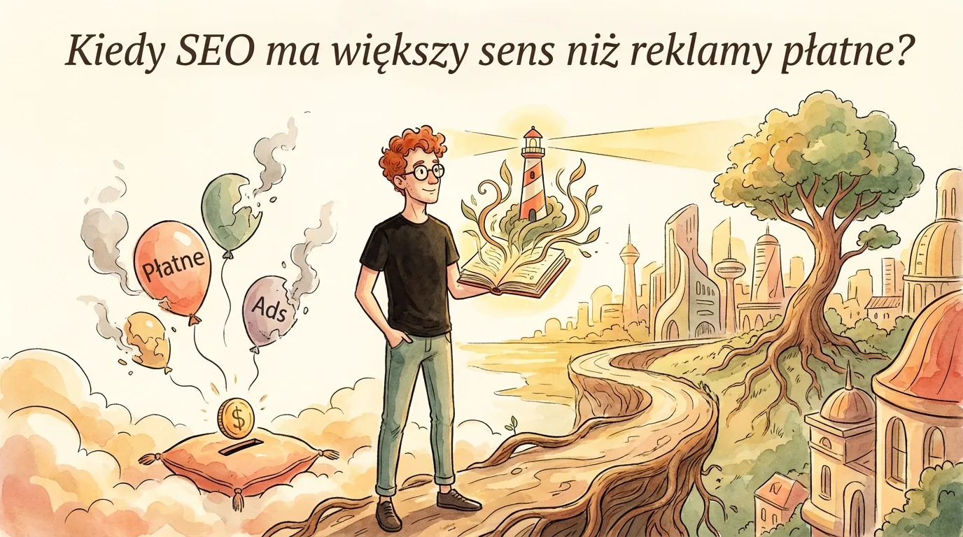 Wybór między SEO a reklamami płatnymi nie sprowadza się do plebiscytu na „lepszy” kanał. To gra o model pozyskiwania klienta: albo budujesz stały dopływ ruchu z wyszukiwarki, albo kupujesz widoczność dokładnie na czas, gdy działa budżet. W wielu firmach potrzebne są oba podejścia, tylko po prostu do innych zadań. SEO zwykle ma większy sens tam, gdzie klienci regularnie wpisują podobne pytania, problemy lub nazwy usług, a serwis da się rozbudować o precyzyjnie dopasowane podstrony. Najważniejsze pytanie brzmi nie „SEO czy reklamy”, tylko „czy w mojej branży da się długoterminowo przejąć istniejący popyt z Google bez płacenia za każde wejście”. Od tej odpowiedzi zależy, czy inwestycja ma nogi, czy jest tylko kosztem.