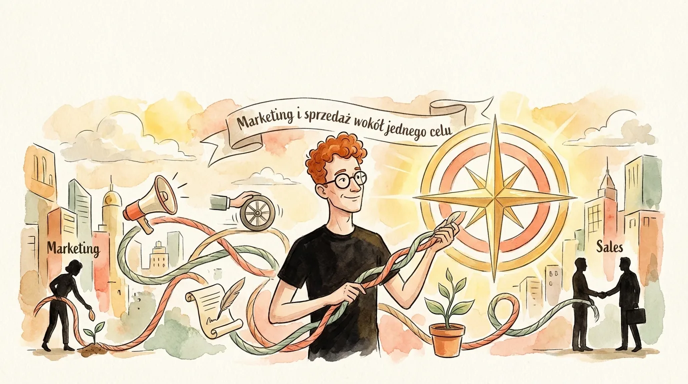 Marketing i sprzedaż wokół jednego celu to sposób pracy, w którym obie funkcje przestają być rozliczane osobno i zaczynają odpowiadać za ten sam wynik biznesowy. Brzmi prosto. W praktyce nie chodzi o większą liczbę raportów, lecz o lepsze decyzje: które kampanie przyciągają właściwe firmy, które leady naprawdę rokują i gdzie lejek traci wartość. To podejście spina dane z reklam, analityki, formularzy i CRM z realnym procesem handlowym. Dzięki temu da się mierzyć nie tylko koszt leada, ale też jakość szans sprzedażowych, tempo przejścia między etapami oraz wpływ działań na pipeline. Najważniejsza zmiana polega na tym, że marketing nie optymalizuje już pod sam wolumen, a sprzedaż nie ocenia leadów „na wyczucie”, tylko według wspólnych definicji i danych. Kluczowe jest to, że taki układ ma największy sens tam, gdzie cykl sprzedaży jest dłuższy, transakcje są bardziej wartościowe, a decyzja zakupowa przechodzi przez wiele punktów styku.
