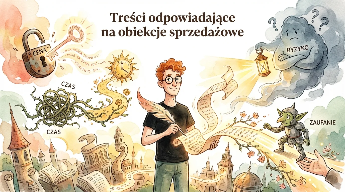 Problem w tym, że często miesza się obiekcje z benefitami. Obiekcja wymaga wyjaśnienia ryzyka, warunków i ograniczeń, a nie tylko pokazania korzyści. Jeśli klient pyta, czy wdrożenie nie sparaliżuje pracy zespołu, to opis przewag oferty nie domyka tematu, bo nie dotyka jego lęku. Treść sprzedażowa działa dopiero wtedy, gdy trafia w realny powód wahania, a nie w ogólny temat związany z usługą.